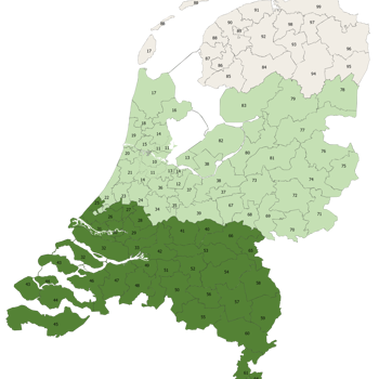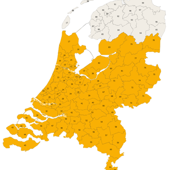 Saman Groep levert haar diensten en producten in een flink deel van Nederland. In het oranje gebied levert Saman Groep alle producten. In het grijze gebied is Saman Groep nog niet actief.