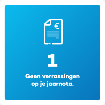 De korting die je krijgt is een loyaliteitskorting die je ontvangt bij het voltooien van de overeengekomen contractperiode. Bij een vaste looptijd van 1 jaar wordt de korting verrekend op je jaarnota aan het einde van het eerste jaar. Bij een vaste looptijd van 3 jaar wordt de korting verdeeld in drie gelijke delen en wordt de korting steeds aan het einde van elke contractjaar verrekend op je jaarnota.
